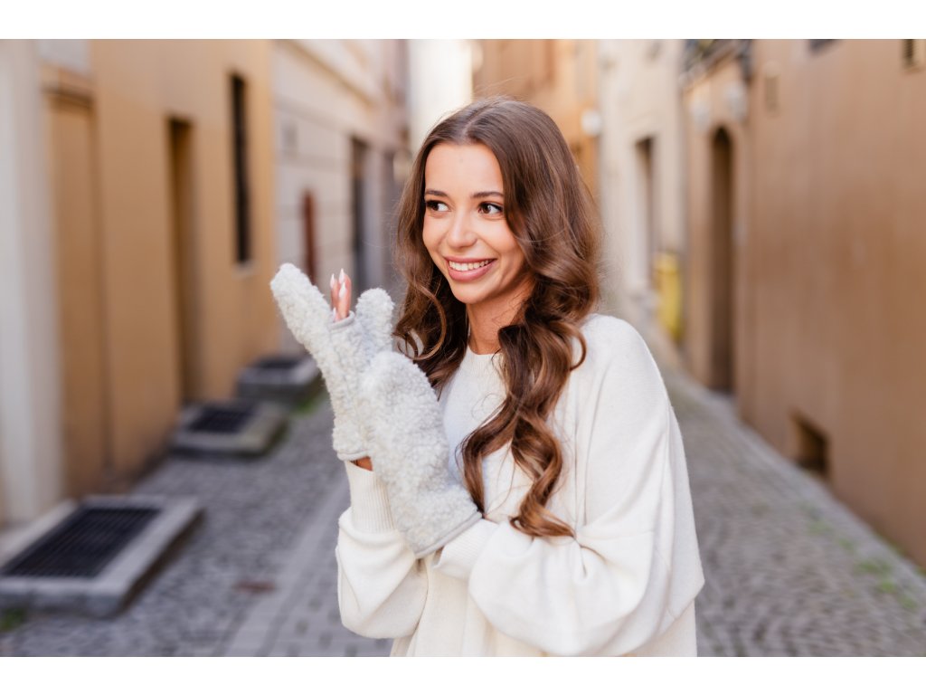 Vlnené rukavice s otvorom na prsty svetlo sivé