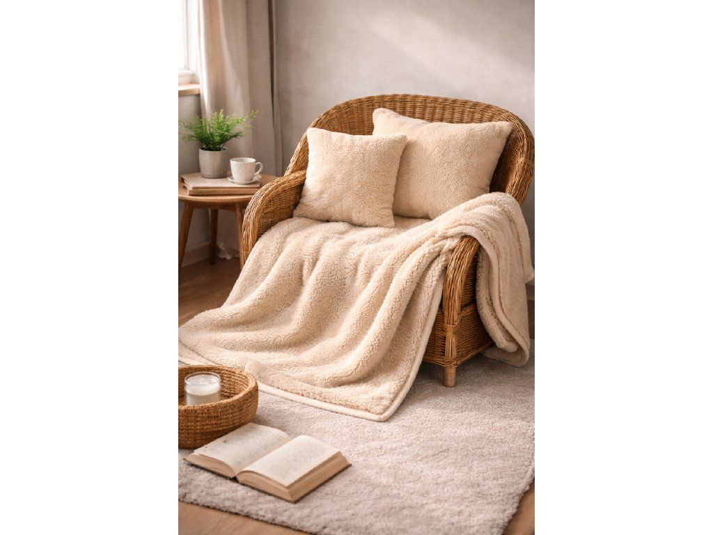 Rozmery: Deka z ovčej vlny 200x140cm, veľký vankúš 70x50cm, malý vankúš 40x40cm