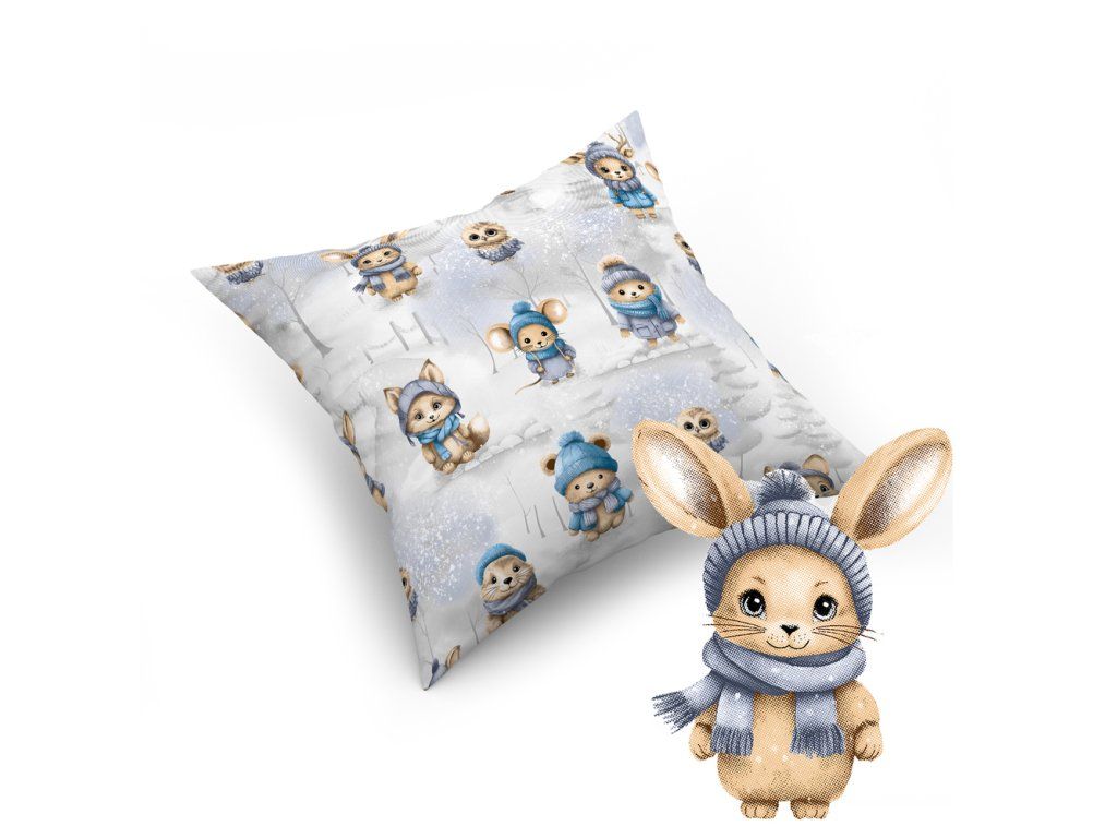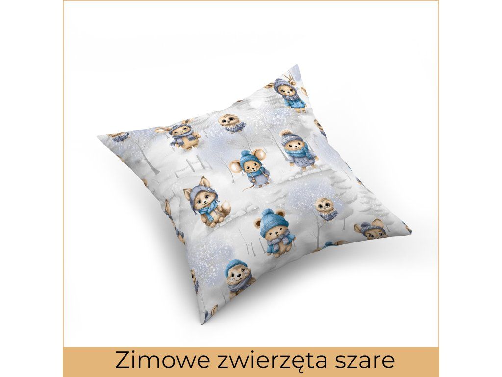 Obliečka so vzorom zimných zvierat na sivom pozadí