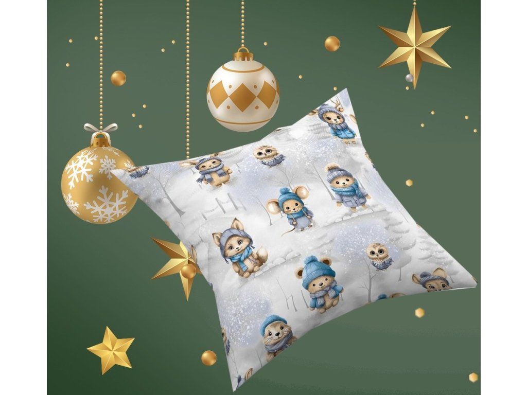 ZIMNÁ obliečka na vankúšik 40x40cm, Zimné Zvieratá Sivé
