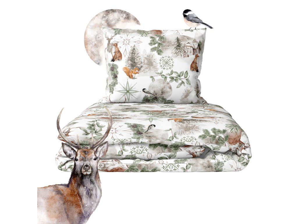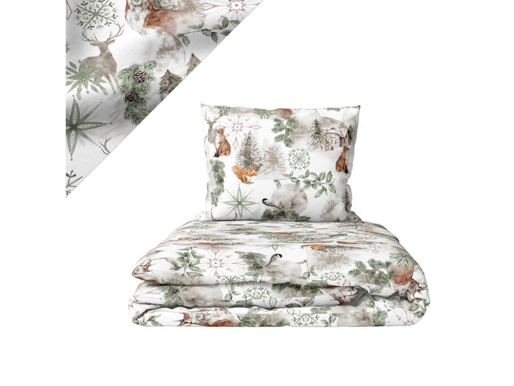 Vianočná súprava posteľnej bielizne 140x200 cm, zimná, 100% bavlna, vzor: laponia zelená