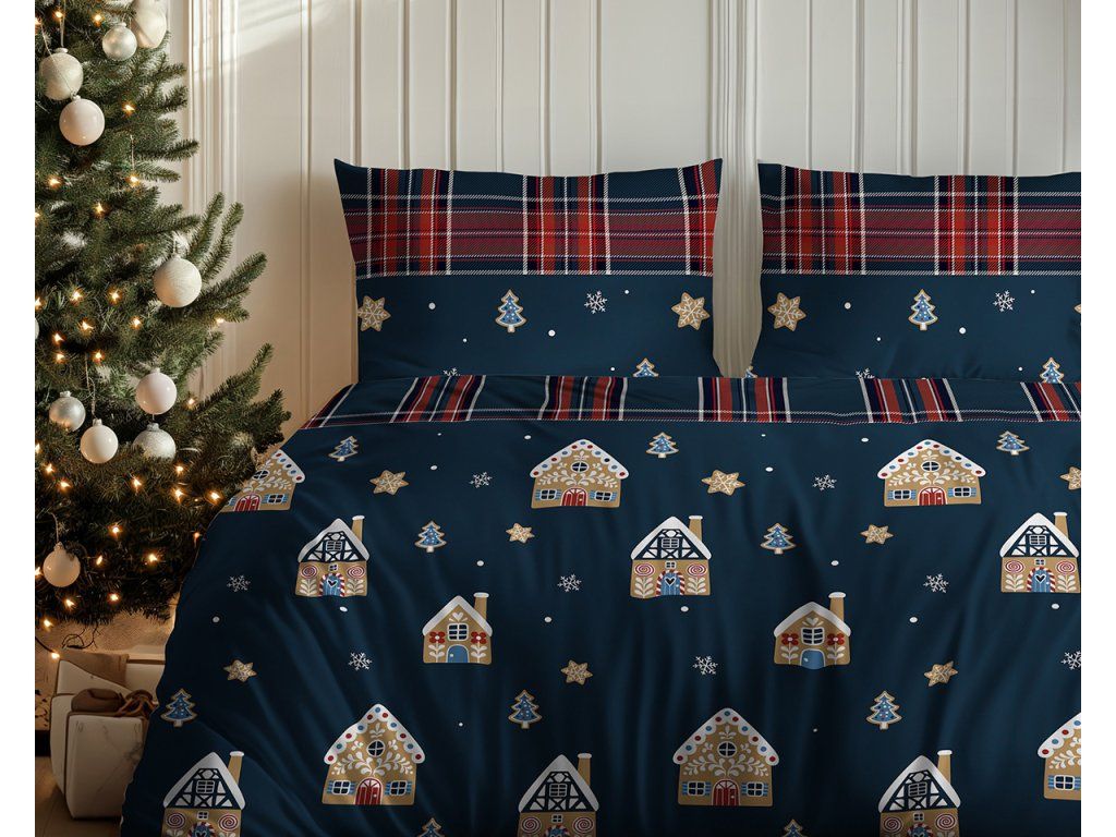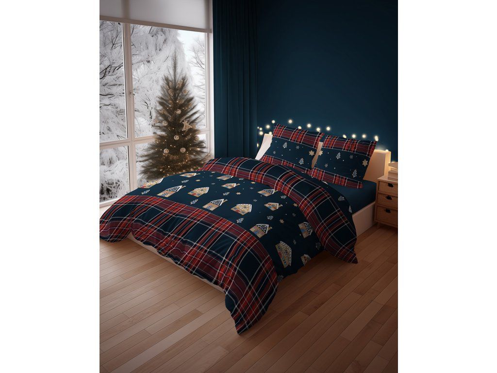 Zimné obliečky 140x200 + 1ks 70x80cm - sviatočné, 100% bavlna.