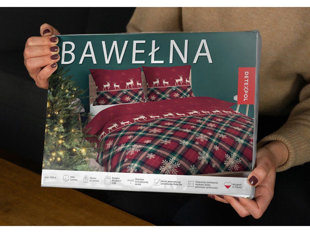 Zimné obliečky 140x200 + 1ks 70x80cm - sviatočné, 100% bavlna.